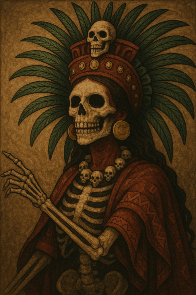 Ella lleva siglos esperando en el Mictlán, guardando los huesos de nuestros ancestros, abriendo las puertas para que las almas regresen cada año. Y nosotros, sin muchas veces saberlo, seguimos respondiendo a ese llamado. Ponemos nuestras ofrendas, contamos historias de los que ya no están, los mantenemos vivos en nuestra memoria.